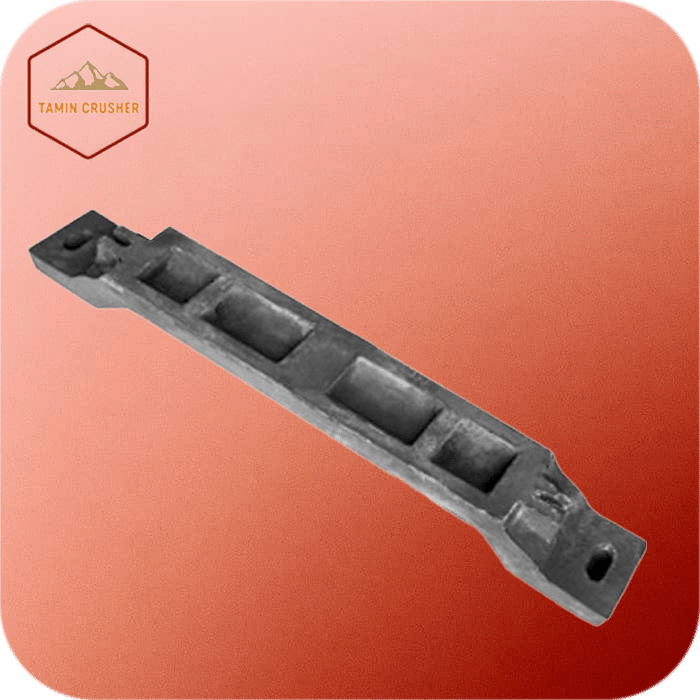 این روبند از فولاد منگنزی DIN 1.3401 ساخته میشود تا در برابر ضربه و سایش دوام لازم را ارائه کند. تأمین کراشر این قطعه را در اختیار خطوط تولید و تعمیرات قرار میدهد. طراحی روبند طوری انجام شده که علاوه بر نگهداری چکشها، جریان مواد داخل محفظه خردایش را نیز هدایت کند.